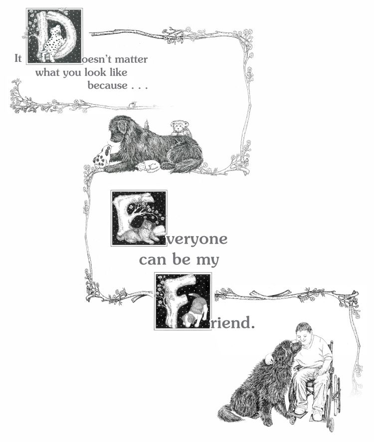Kathleen’s beautiful pen and ink illustrations accompany her “social story” of a friendly Newfoundland dog gently demonstrating social skills such as expressing, “Thank you,” picking up after oneself and being kind to others. This ABC book’s messages of compassion resonate with all ages, abilities and walks of life because now, more than ever, manners matter. Printed on sturdy card stock and coil-bound in the USA. (Ages 3 and up).